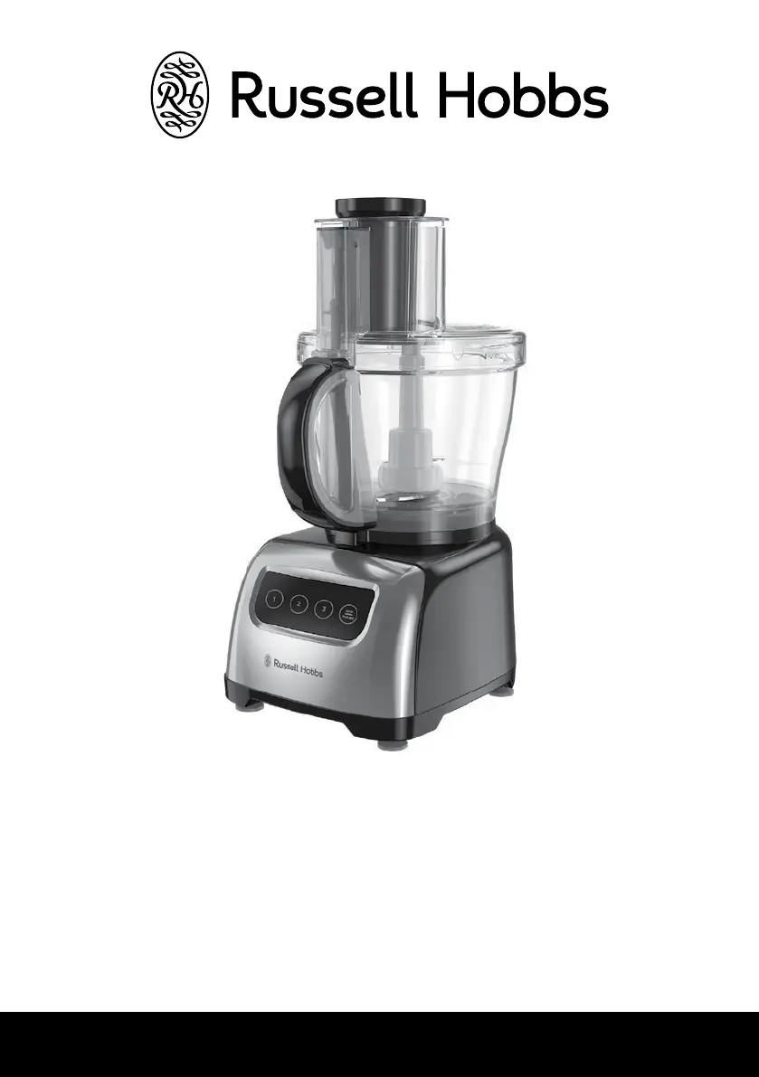 If your Russell Hobbs Food Processor doesn't operate, first ensure that the large work bowl and lid are correctly aligned and locked, with the large food pusher inserted in the feed chute. Also, check if the food processor is properly plugged into a working outlet and that the circuit is closed (if you have a circuit breaker box). As a last resort, try unplugging the food processor and then plugging it back in.