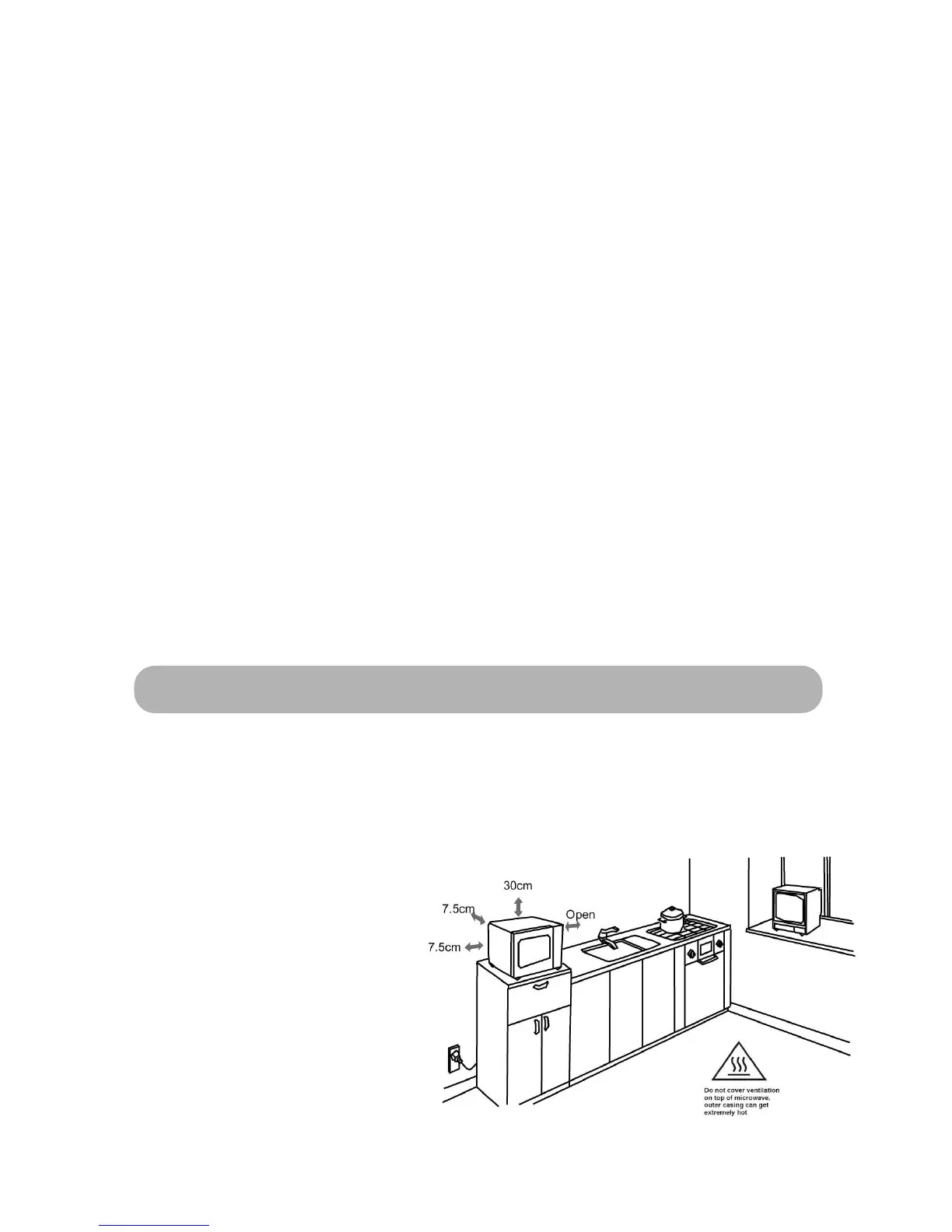 ¾ This microwave is designed to be free standing and is not intended to be used ‘built in’ or