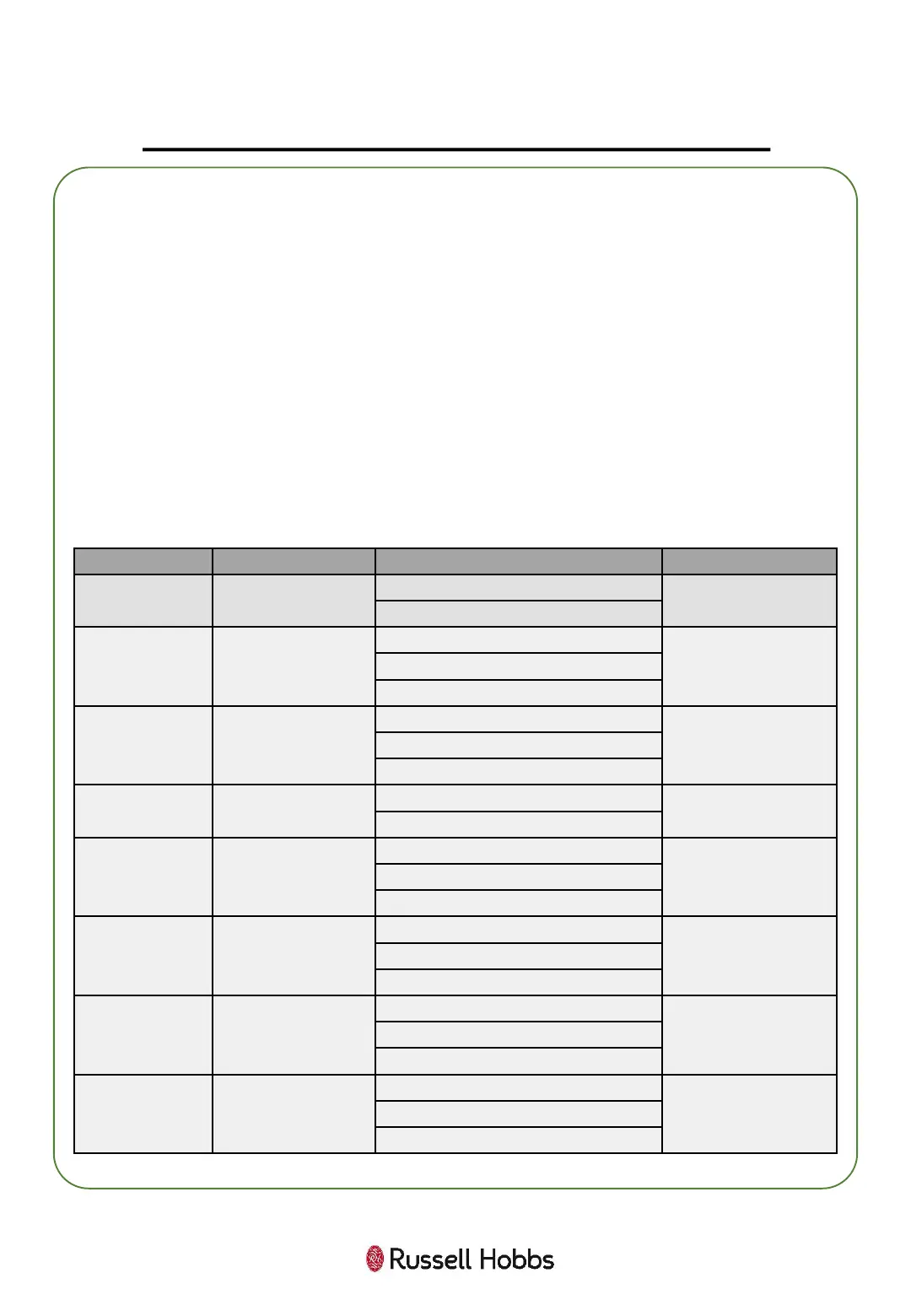 weight as times may vary - below is a guideline for each auto cooking setting: