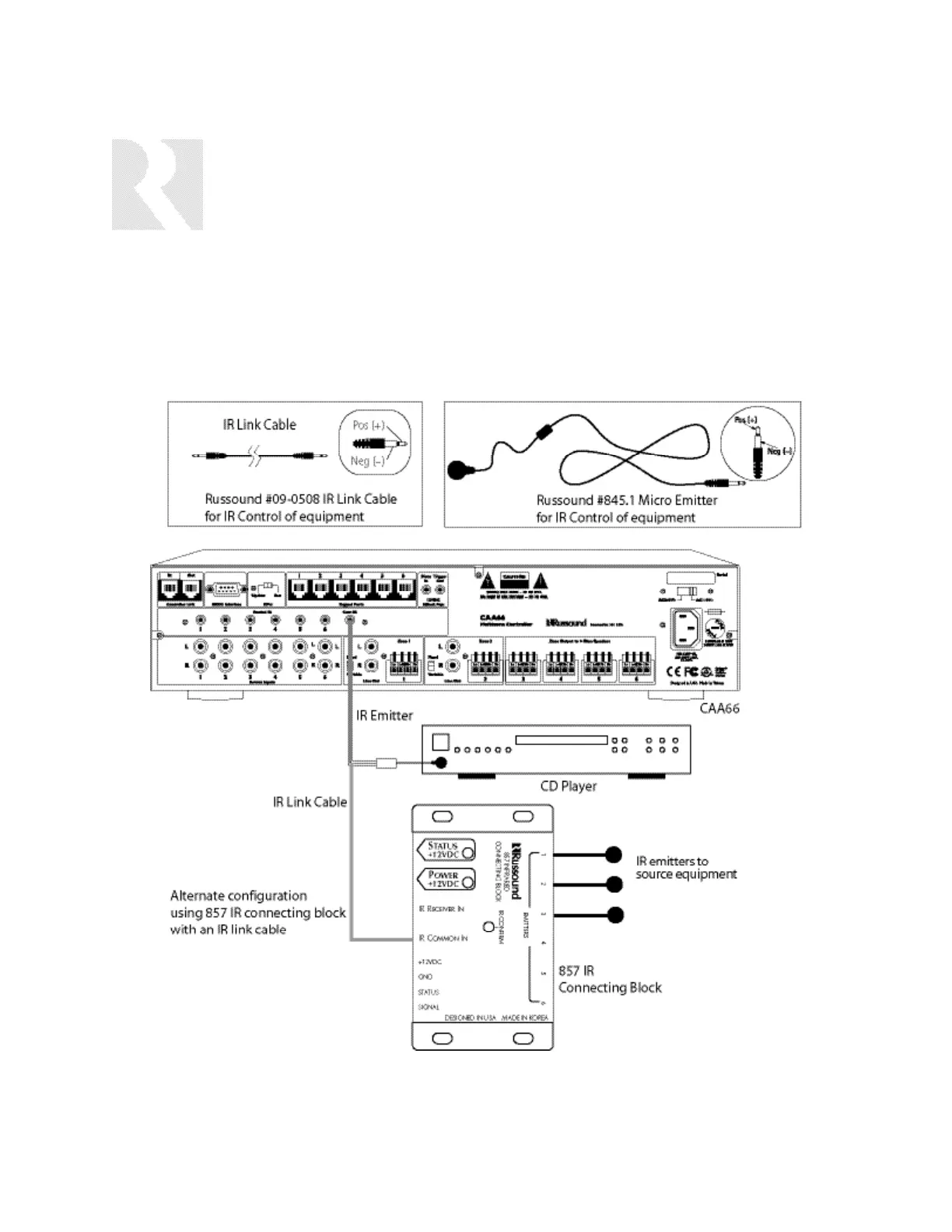 The Russound 845.1 single IR emitter is recom-