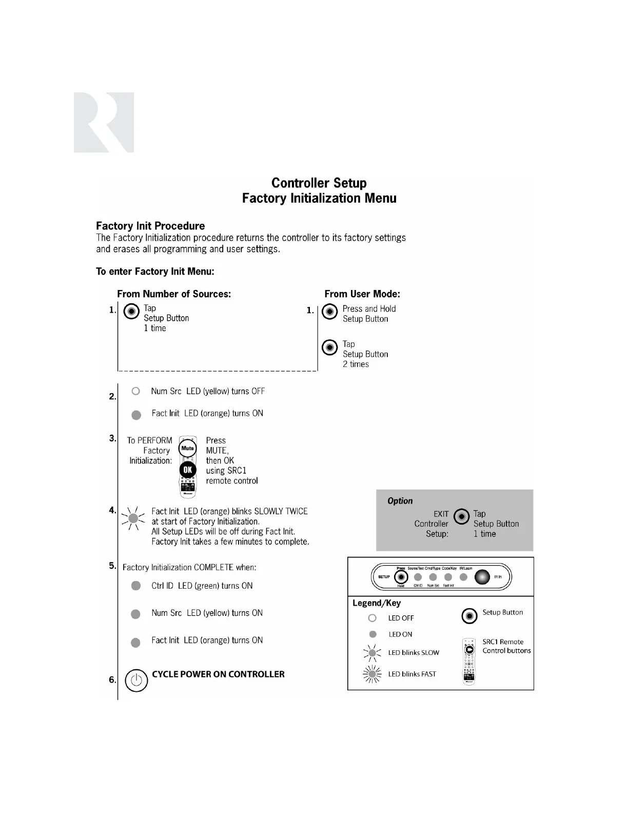 Russound CAA66K - INSTALLER PROGRAMMING OVERVIEW; Controller Setup - Factory Initialization Menu