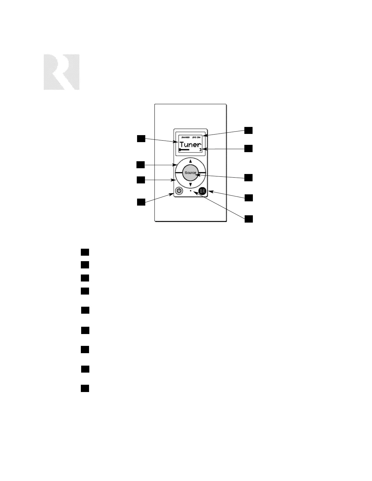 SOURCE SELECT - Press and release scrolls through the available sources. Press and hold