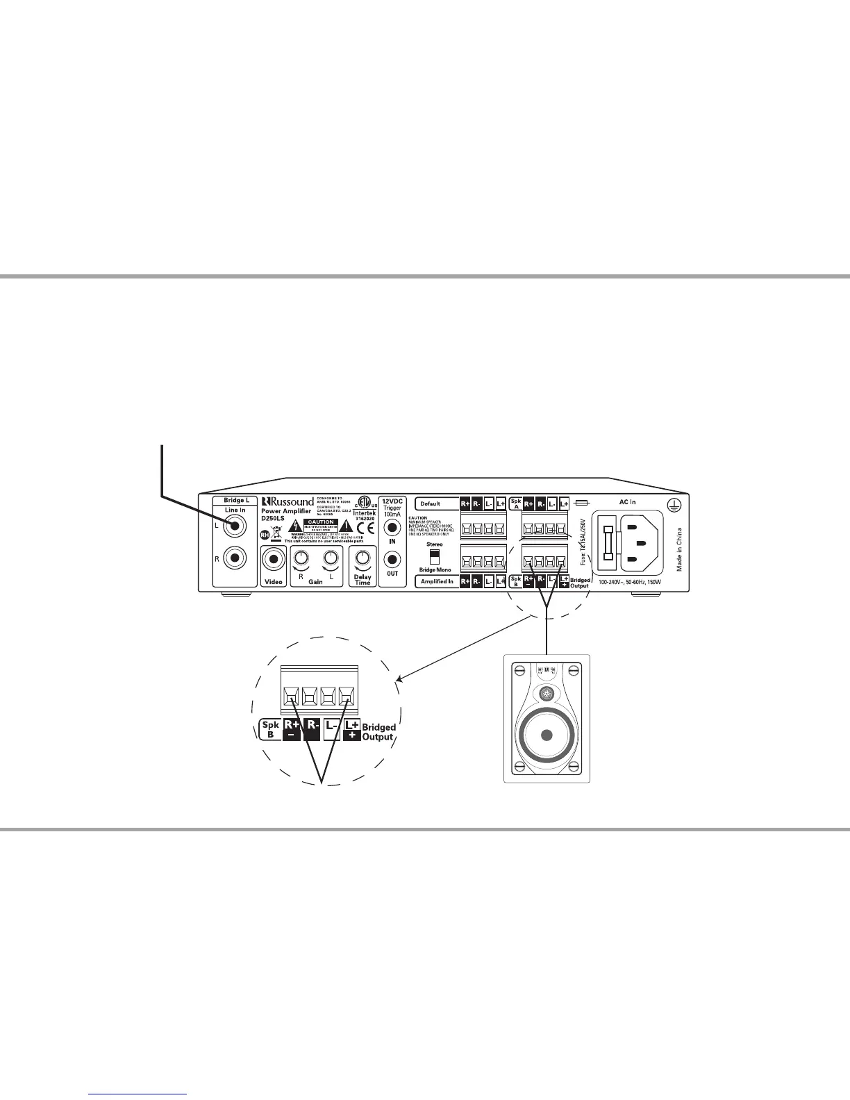 For bridged amplier operation, turn o the power to the amplier and