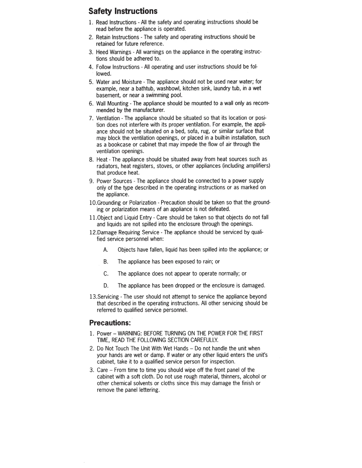 Russound KPSC - Safety Instructions; General Safety Guidelines; Operational Precautions; Handling and Care Precautions