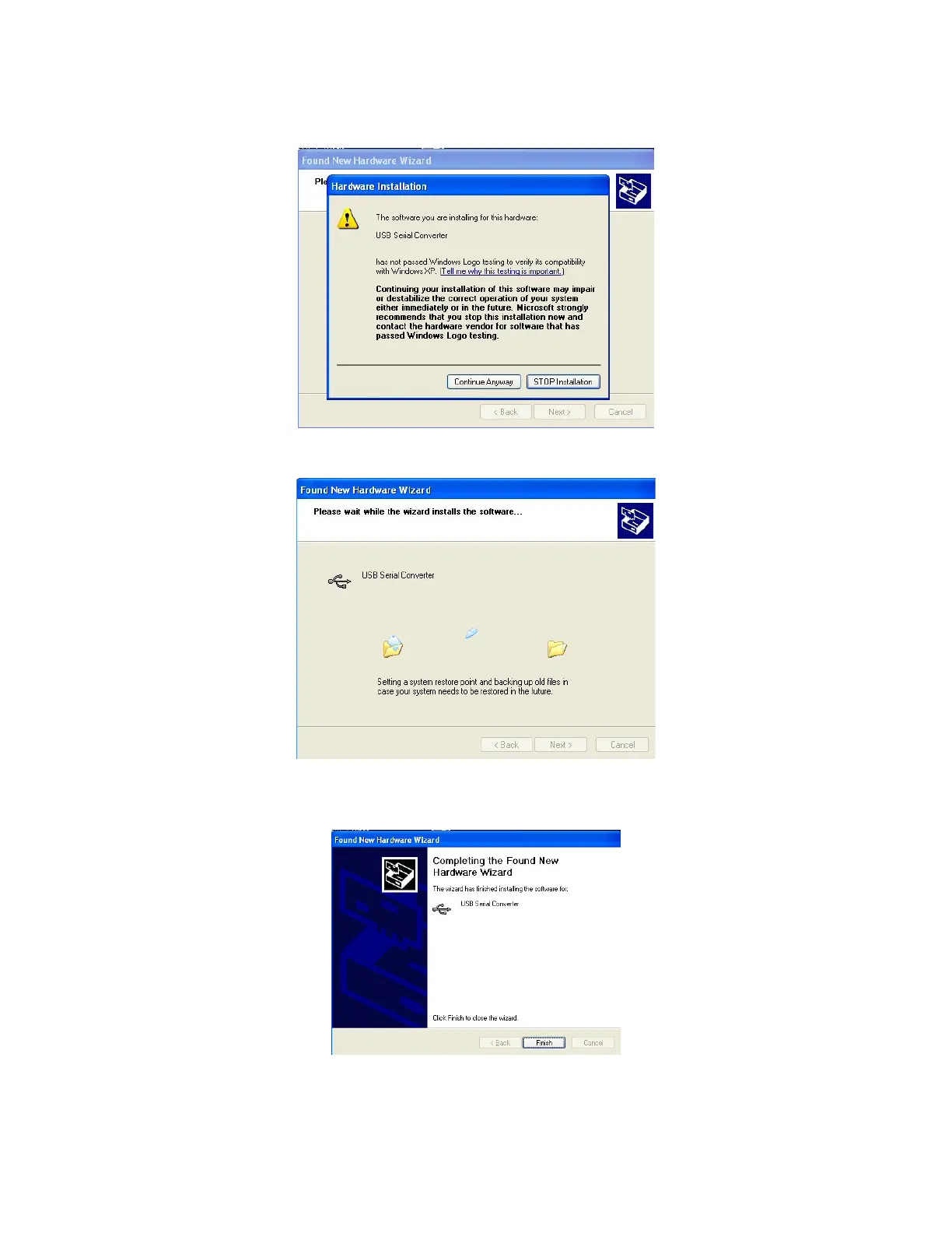 10. This dialog will display showing the USB Serial Converter is being installed.