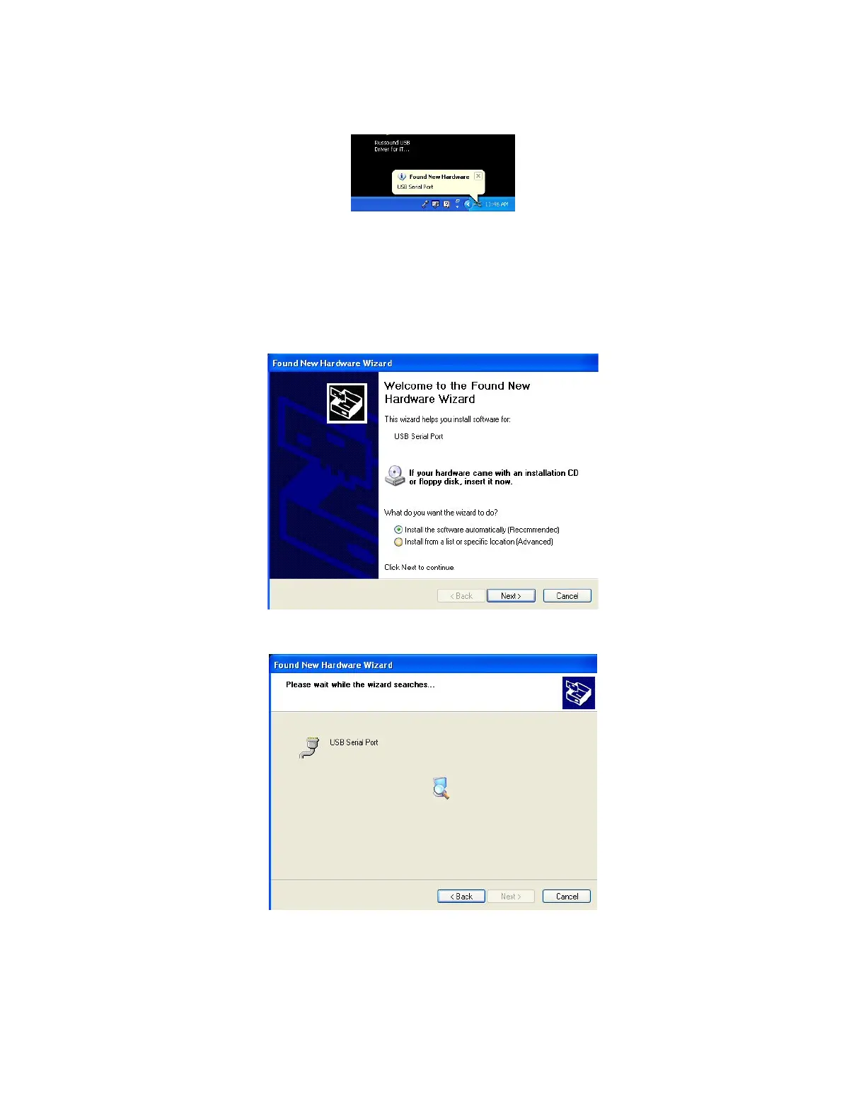 13. The “Welcome to the Found New Hardware Wizard” dialog displays. Ensure