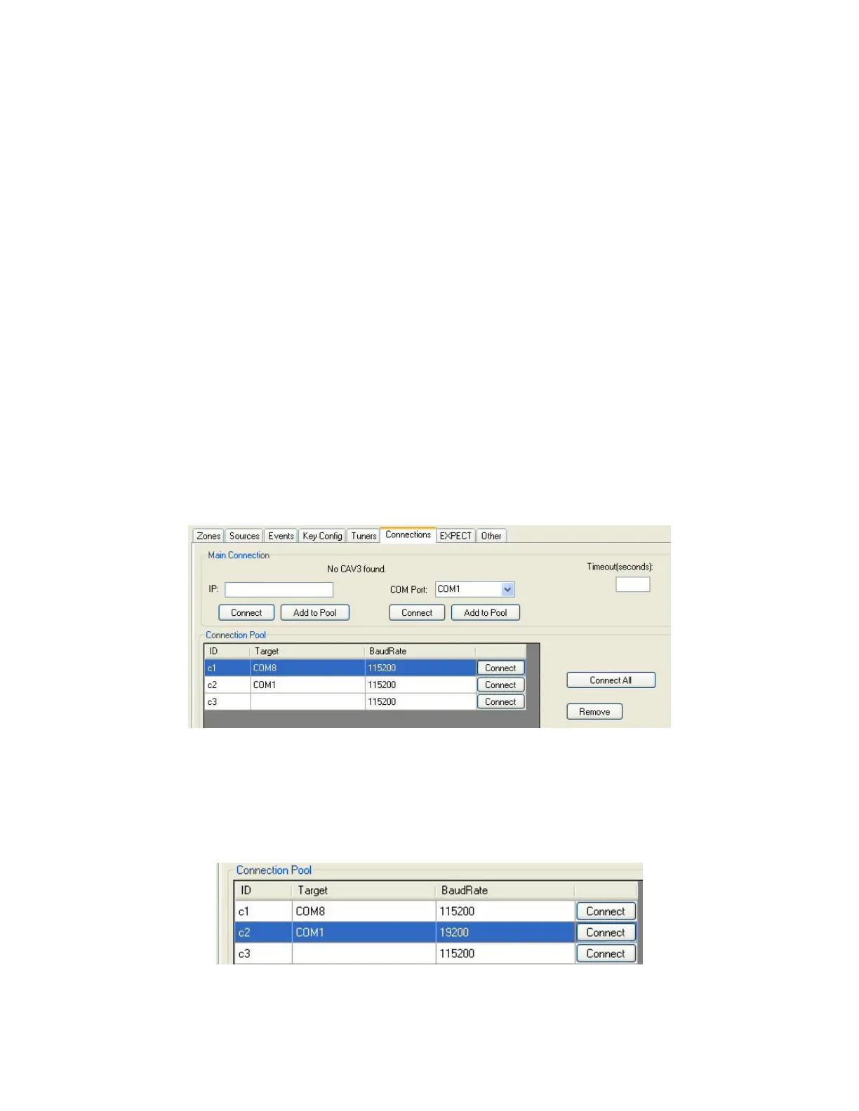 9. Click the “Connections” tab in the lower half of RVCLIScripter.