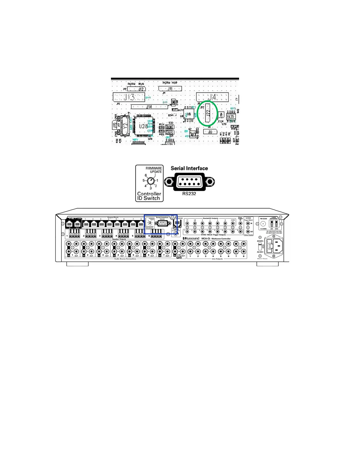 2. Connect the computer’s RS232 cable to the Serial Interface RS232A Port