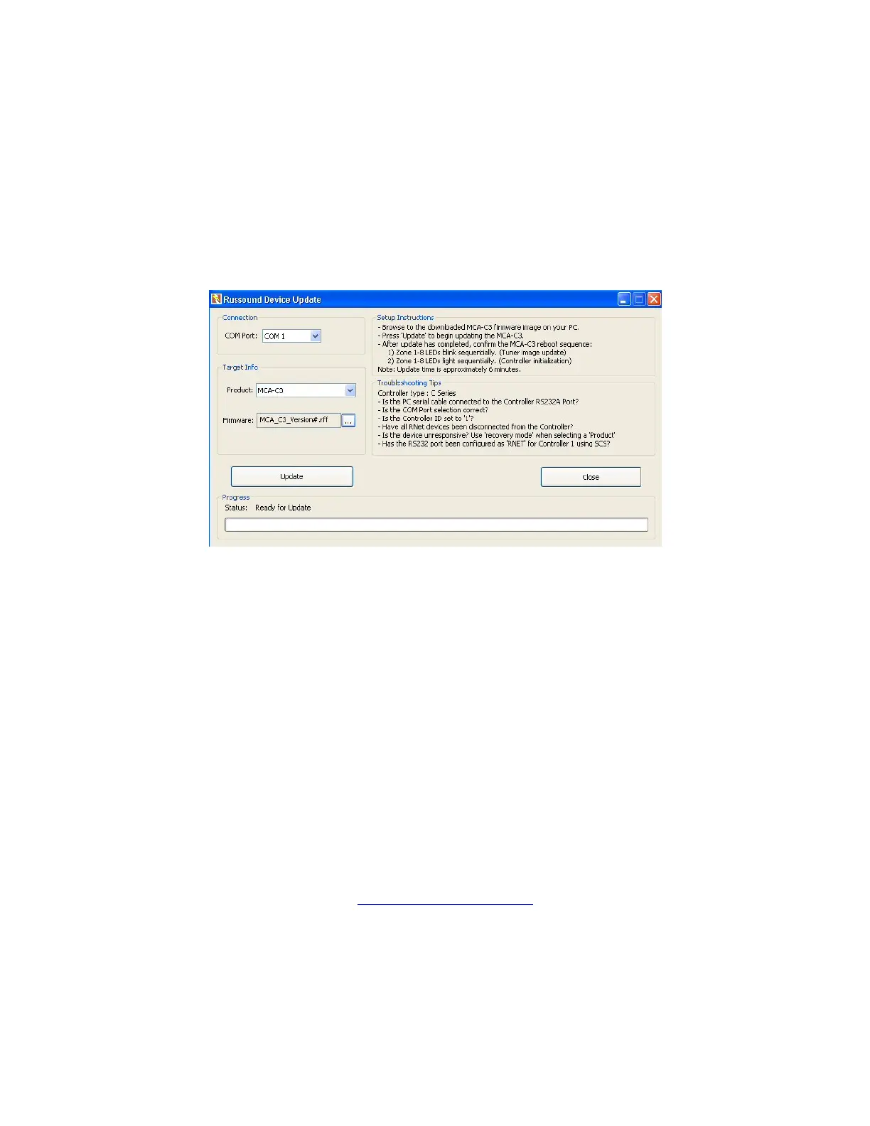 1. Open “Russound Device Update”.