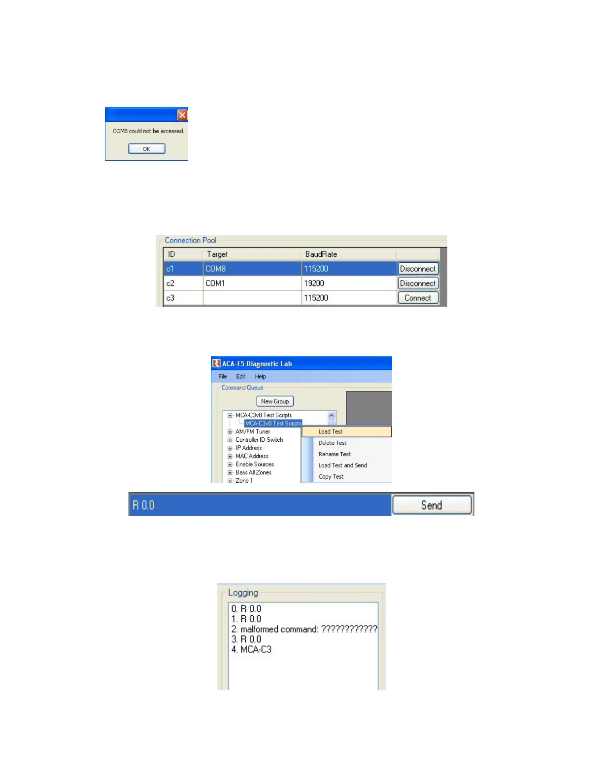 7. Click the “Send” button several times until the “Logging” window displays