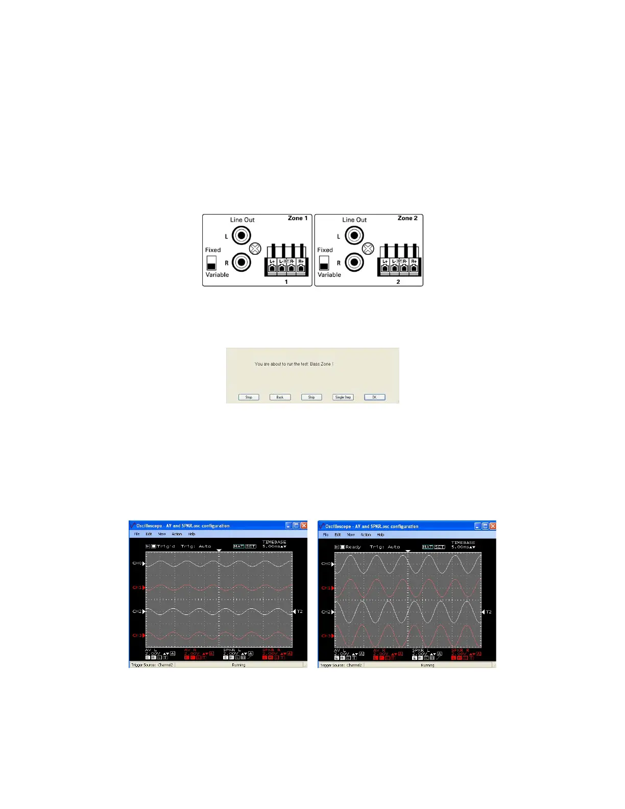 Oscilloscope #2 is viewing Speaker Level signals.