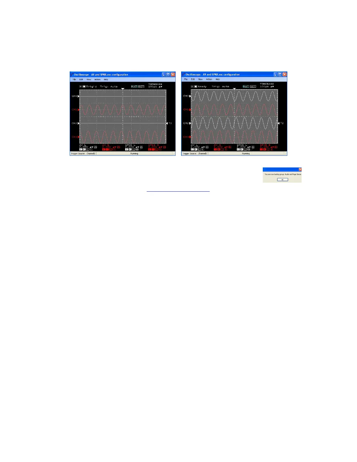 4. When this test finishes you will see the group Audio and Page Sense dialog,