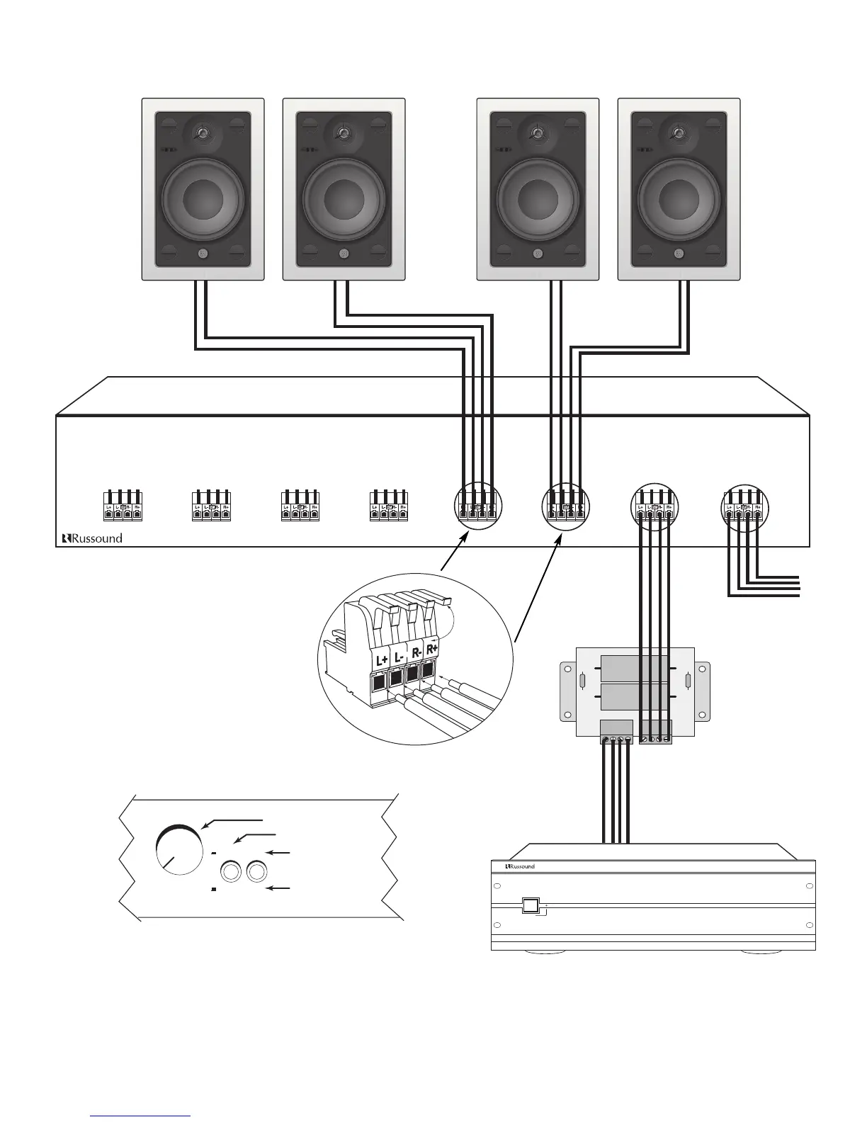 Connection Diagram for Russound SDB Series Dual-Source Speaker Selectors (Not to scale)