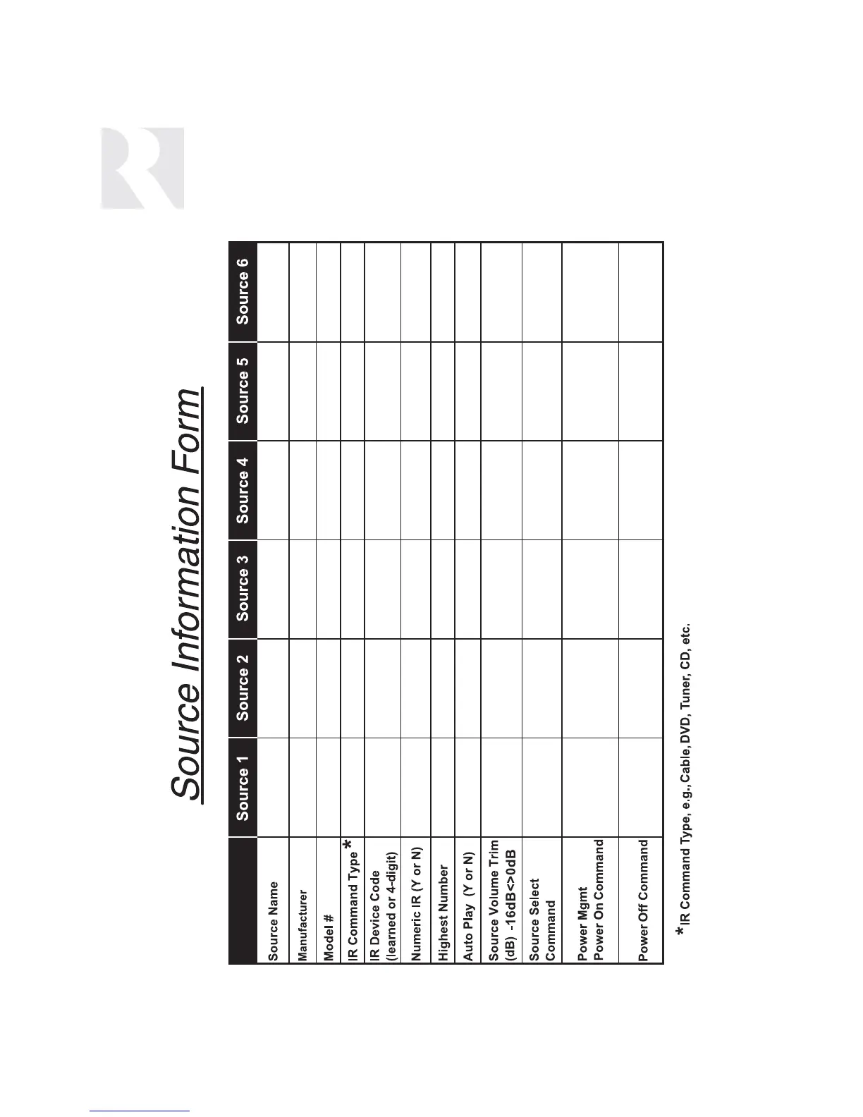 Russound SIX-SOURCE CONTROLLER CAM6.6 - Setup Forms; Source Information Form