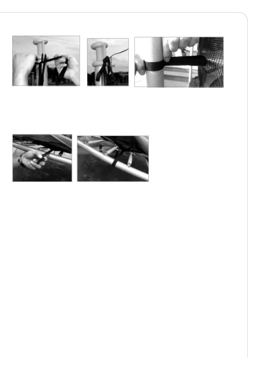 trampolinekanten. Pass på at den nedre stroppen festes ovenfor kantputen på
