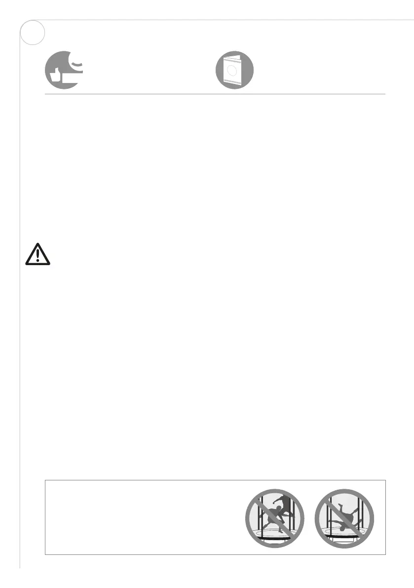 • Feil bruk av denne trampolinen innebærer en risiko og kan resultere i alvorlige