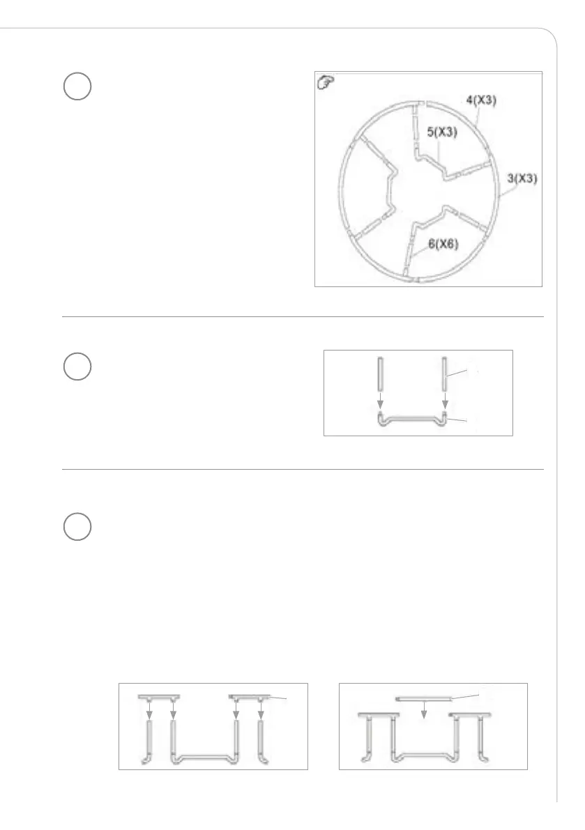 B. Nå monterer du de 3 øvrige toppskinnene (4) i åpningene mellom de
