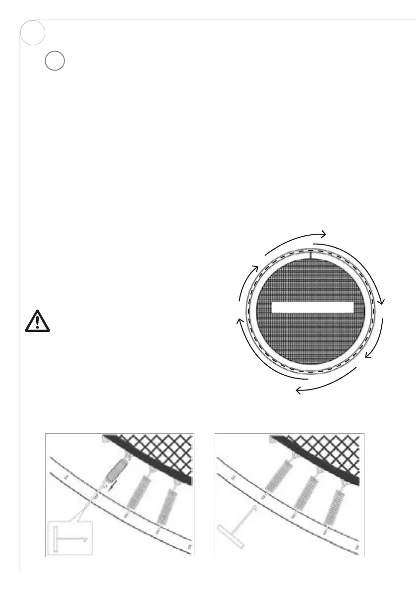 • Montere fjærene i rammen. Før verktøyet gjennom V-ringen i dukens ytterkant,
