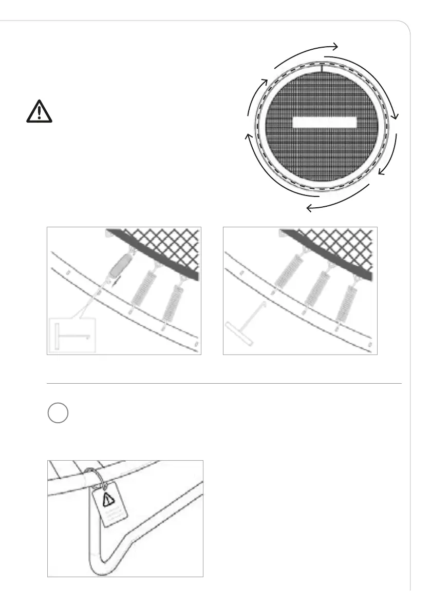 Fest sikkerhetsskiltet (9) på trampolinen med en strips. Stripset skal ligge rundt