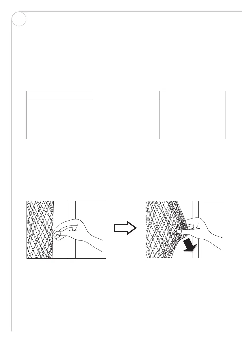 and pulling a section of the netting between fingers and pulling downward. Please see