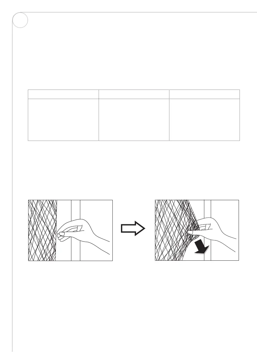 en del av nettingen med to fingre og dra den nedover. Se diagrammet nedenfor.