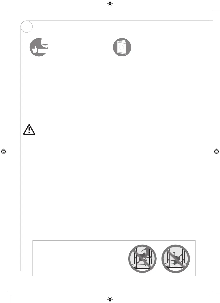 • Feil bruk av denne trampolinen innebærer en risiko og kan resultere i alvorlige skader!