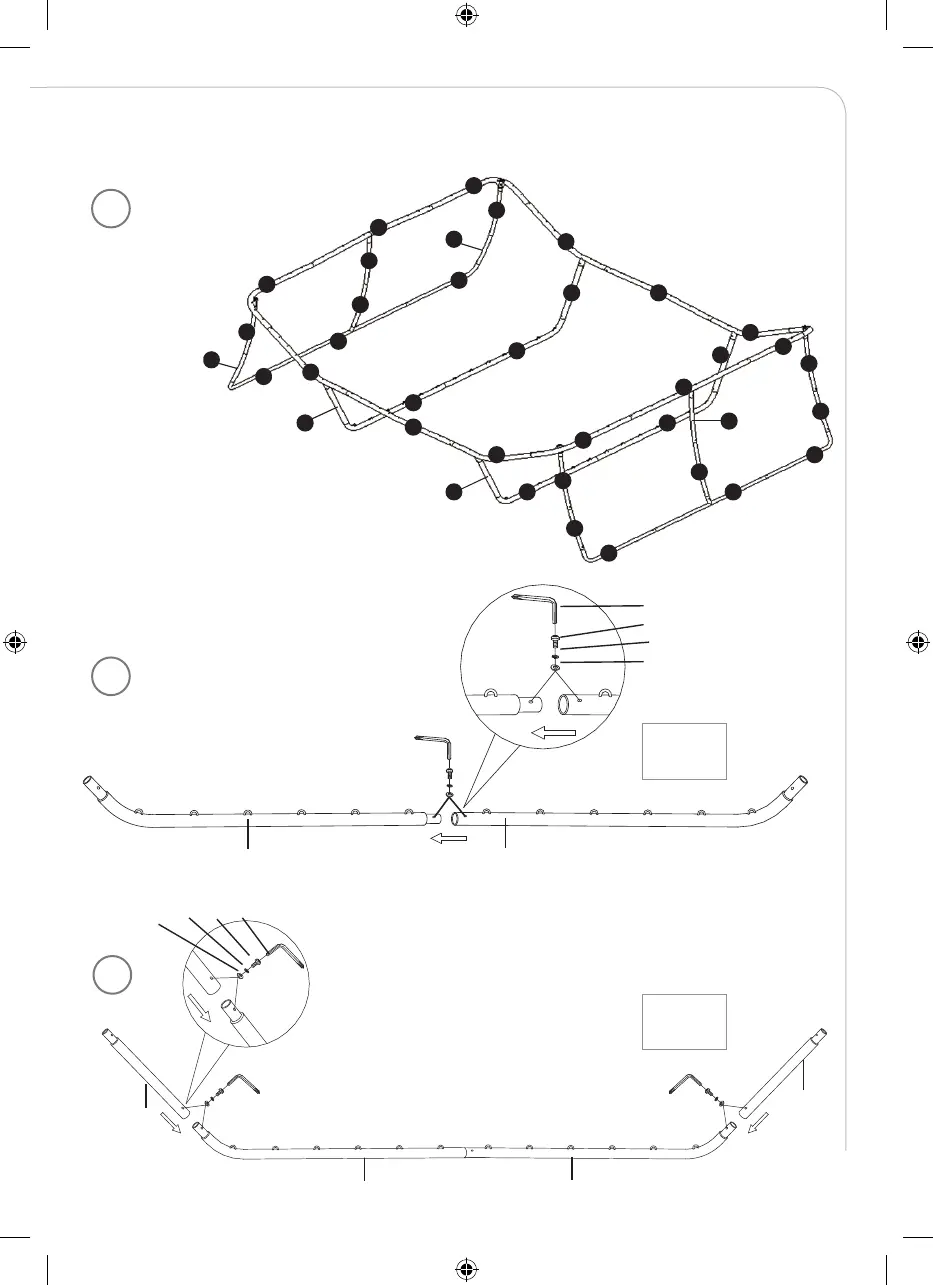Locate the 38 pieces of steel tubing parts that are needed to assemble the trampoline frame as shown in