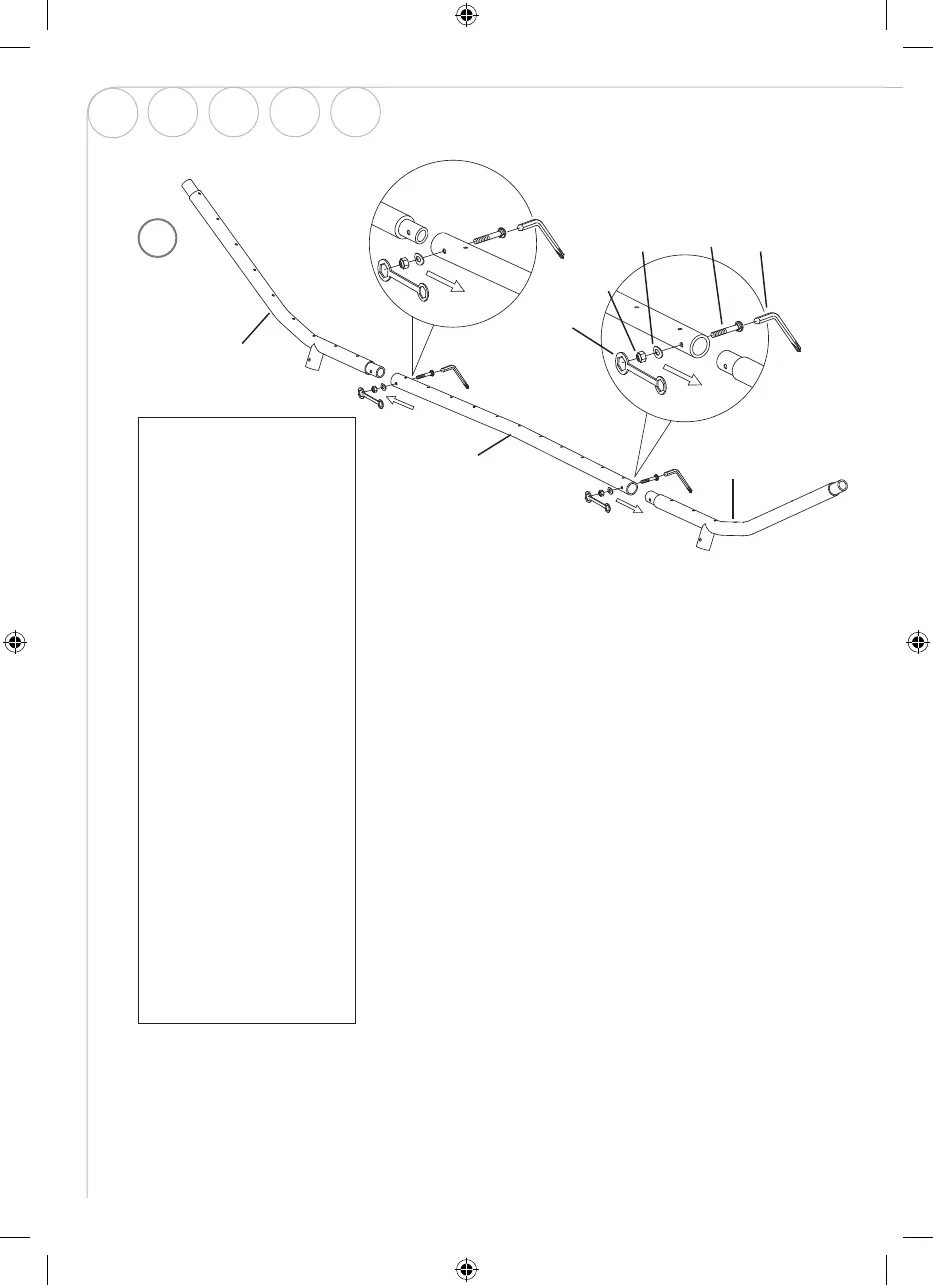 Make sure all holes on the frame tubes are facing upward which are needed to install the springs later. Repeat