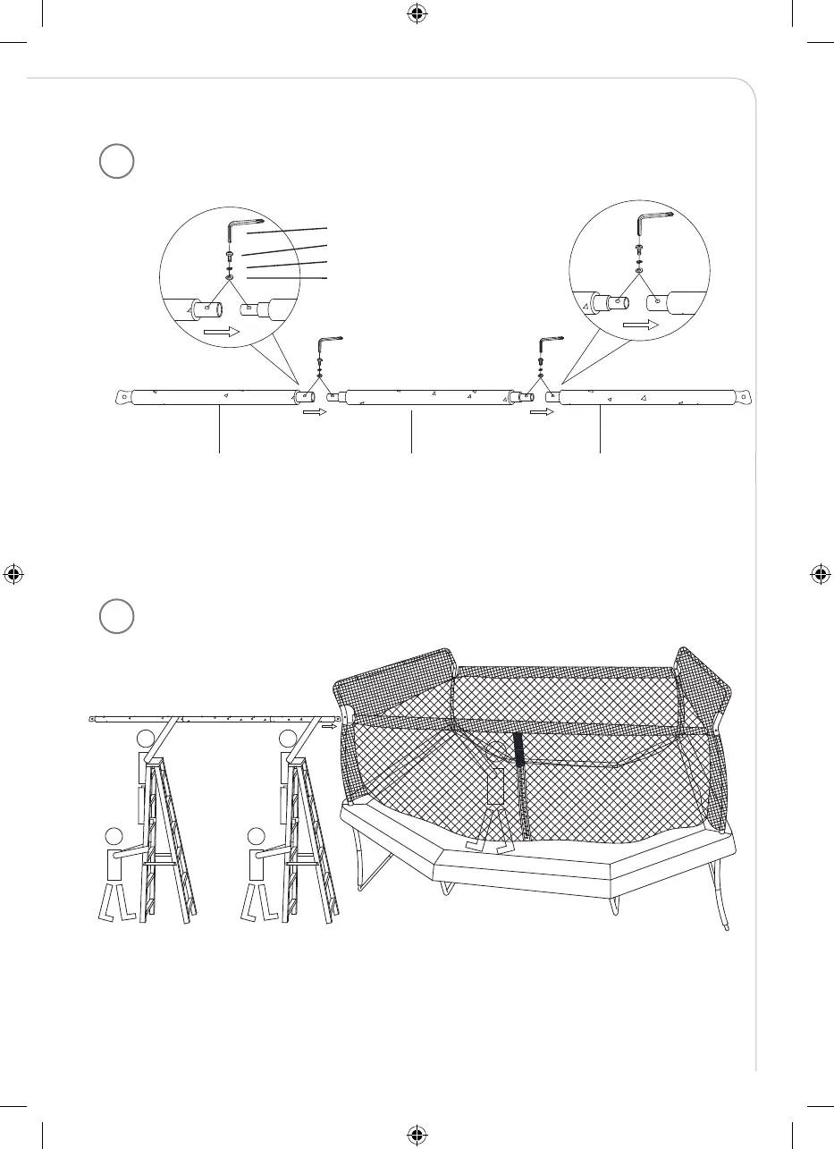 Note: At least two tall ladders (not provided with the product) and five people are needed to assemble