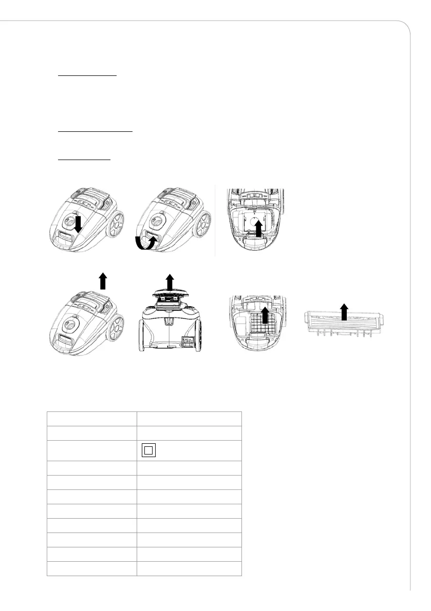 • Bytte støvpose: Når indikatoren bytter til rødt, er det på tide å tømme støvposen