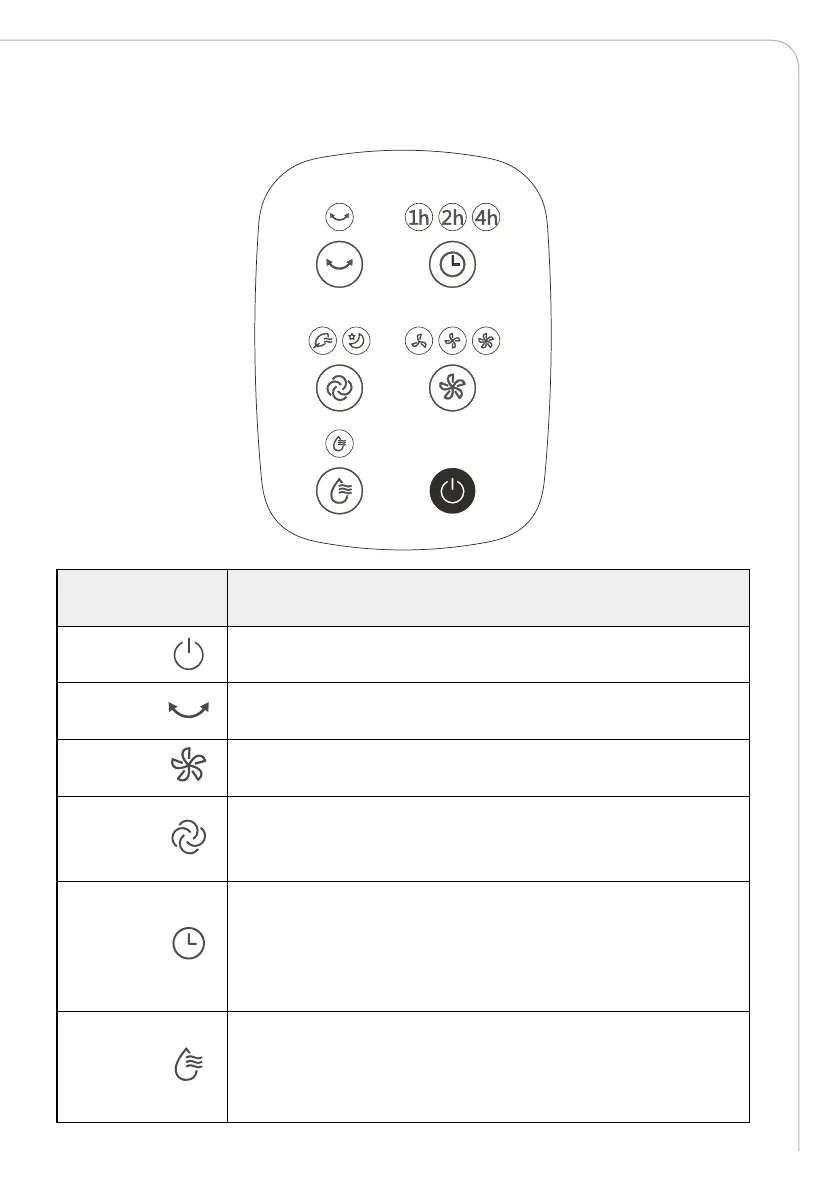 Tryck på air swing-knappen för att aktivera eller stänga av