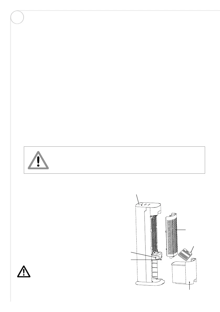 • Der Bereich um den Luftbefeuchter darf nicht feucht oder nass werden.