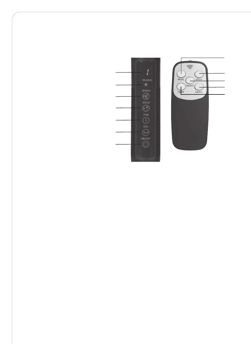 5. Oszillation: Drücke die Oszillationstaste, um die Oszillation für eine breite Luftverteilung zu