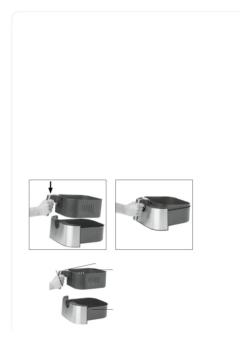 2. Din varmluftsfritös levereras med friteringskorgen fastlåst i tråget, inuti varmlufts-
