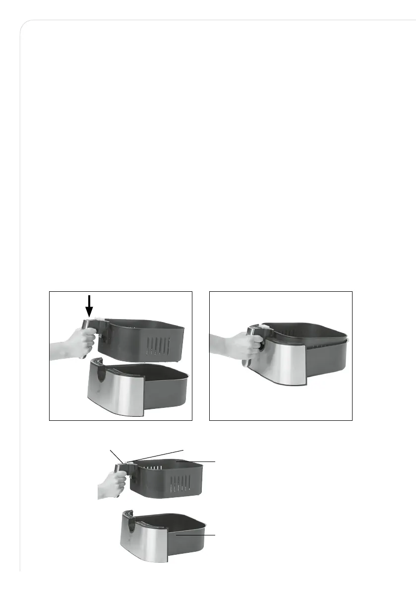 3. Slik låser du opp og tar frityrkurven ut av skuen: Skyv den klare kurvlåsen forover