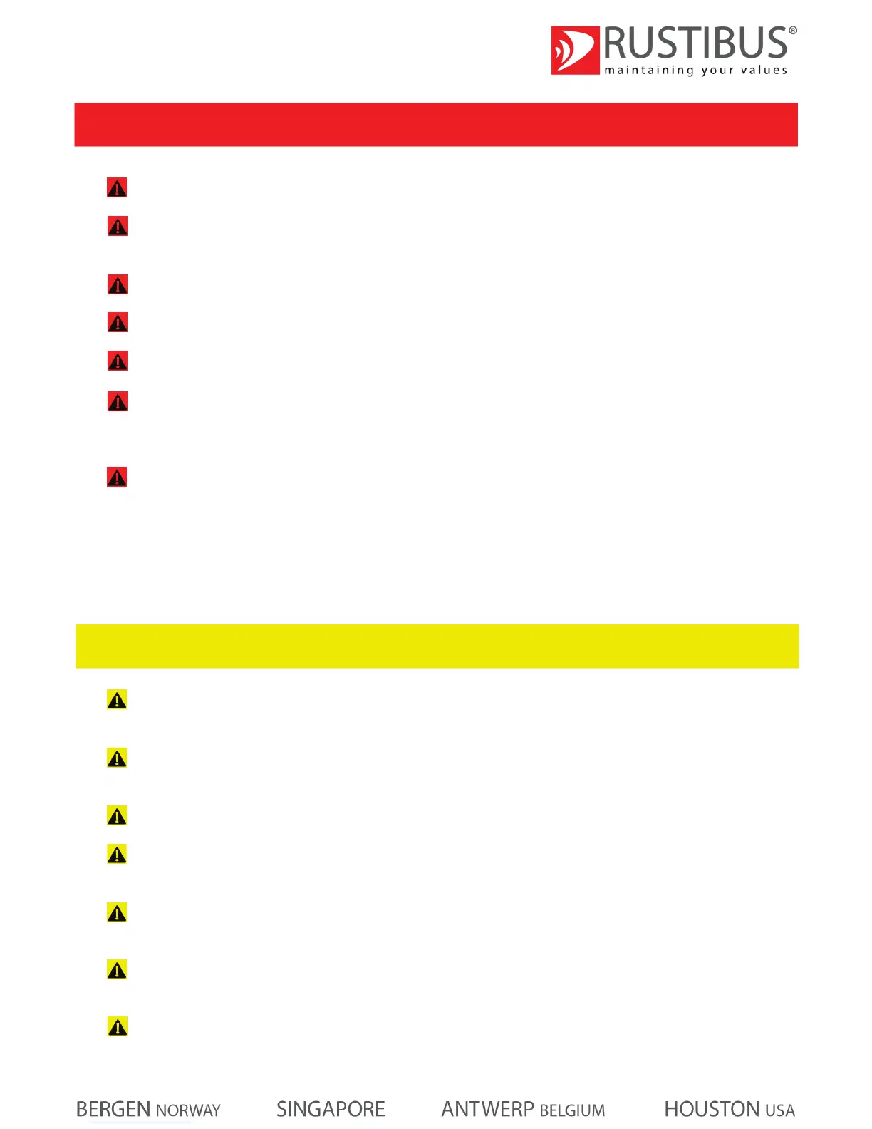 Never install, remove or perform any maintenance on the Rustibus® de-scaling machine when