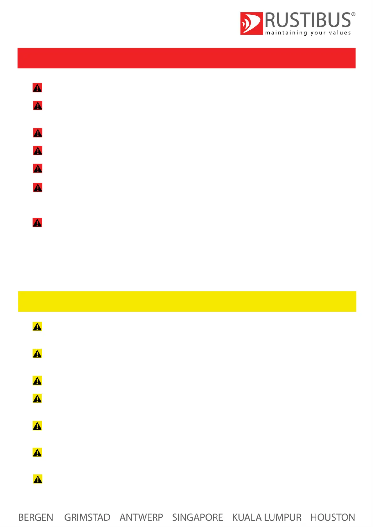 Never install, remove or perform any maintenance on the Rustibus® de-scaling machine when