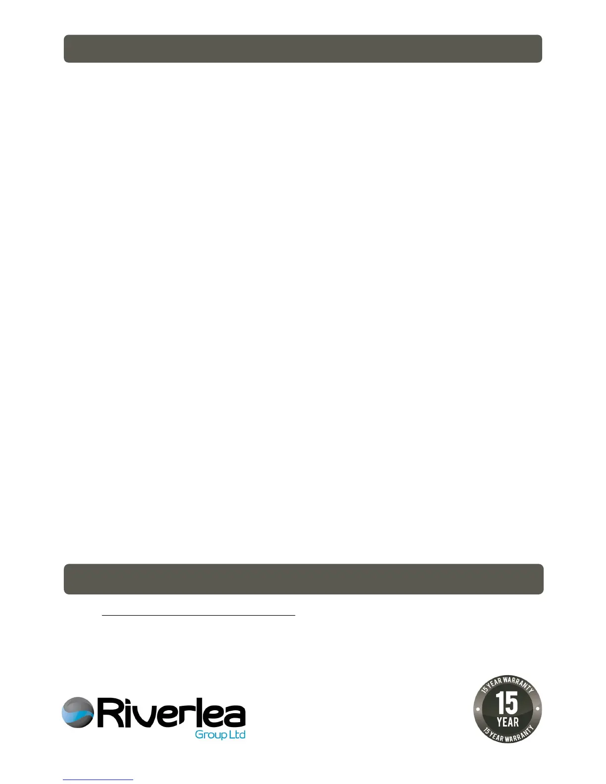 ranty will cover any repaired or replaced material. Riverlea Group Limited will not be liable for any consequenal loss or damage, labour or