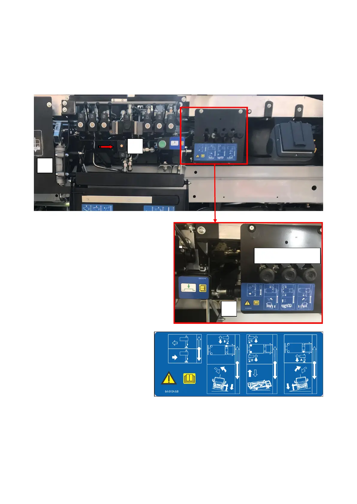 - simultaneously operate the manual pump (2) and outrigger functions’ levers (A, B, C+D) until the outrigger