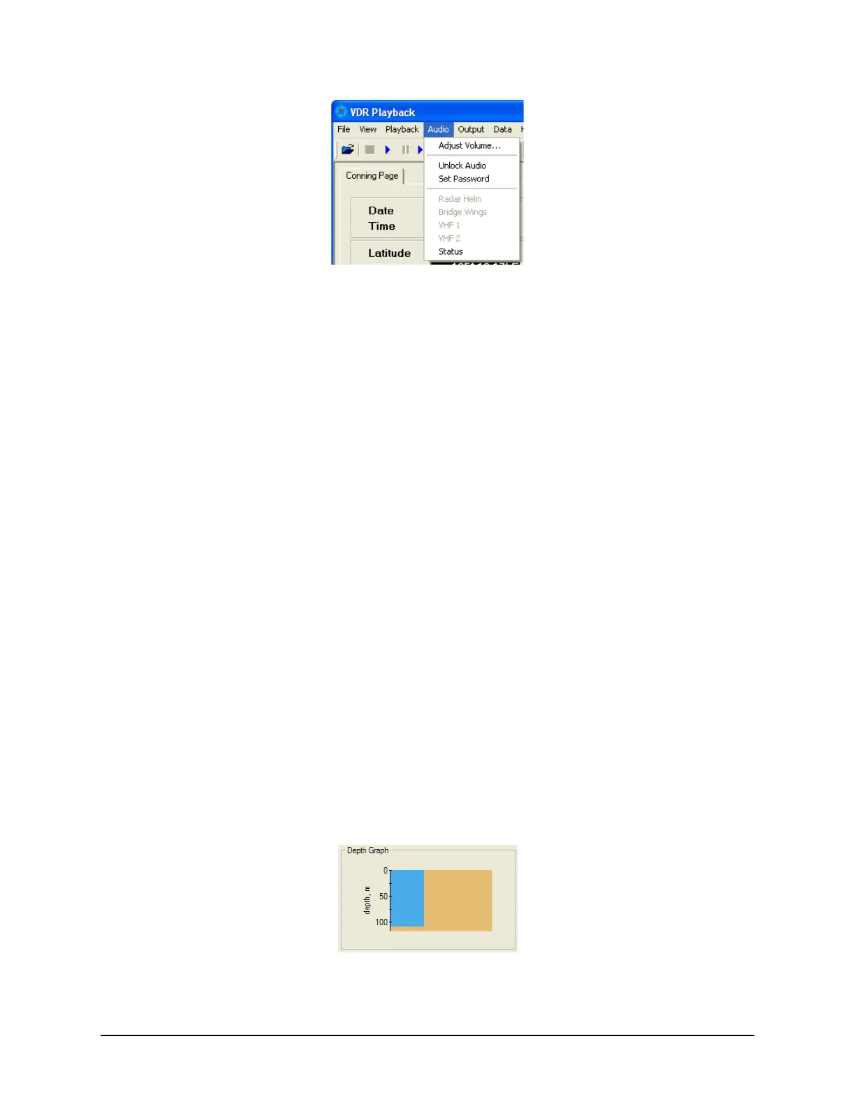 The Depth Graph provides an illustration, in metres (m), of the ship’s depth.