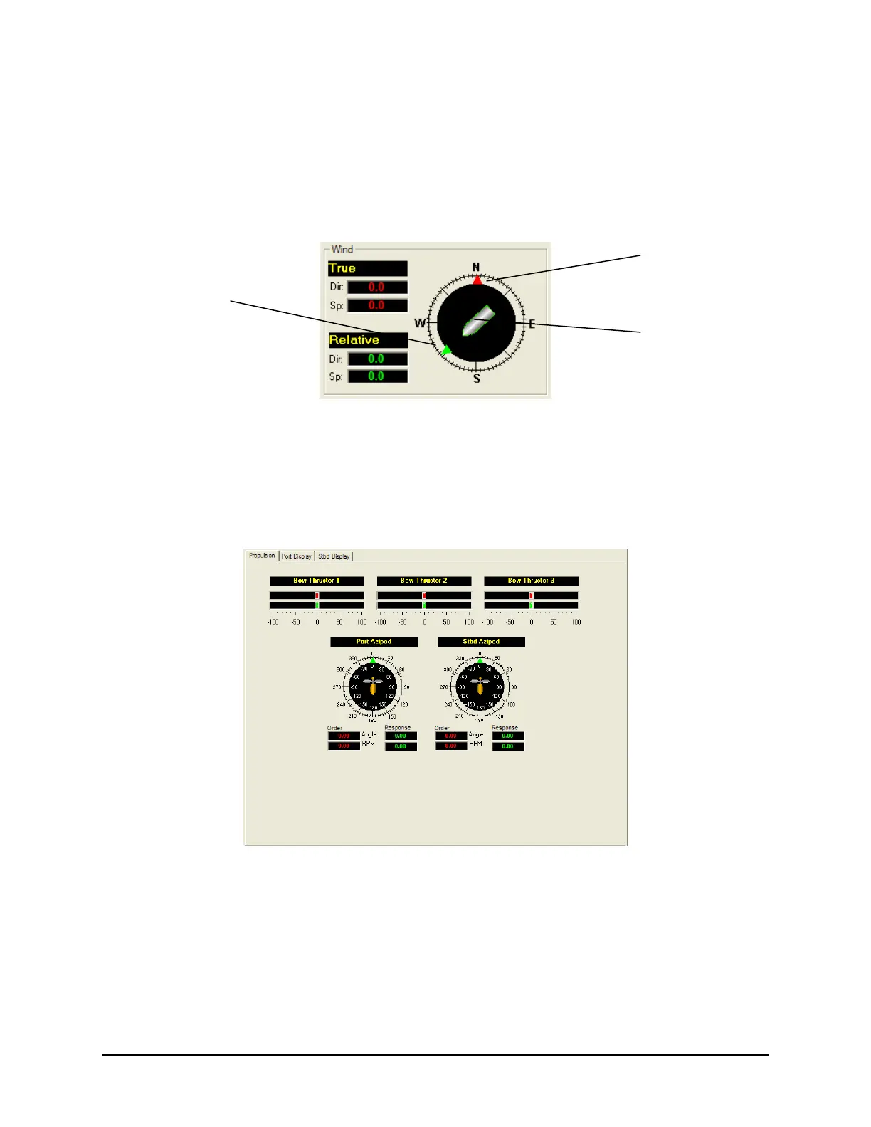 bow thruster configuration and NMEA strings broadcast by bridge electronics. These displays are
