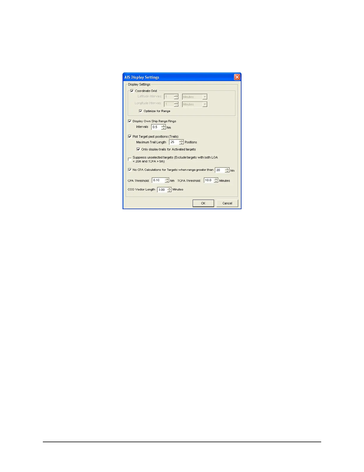 The “Settings” button located in the View Settings section opens an “AIS Display Settings” window. The