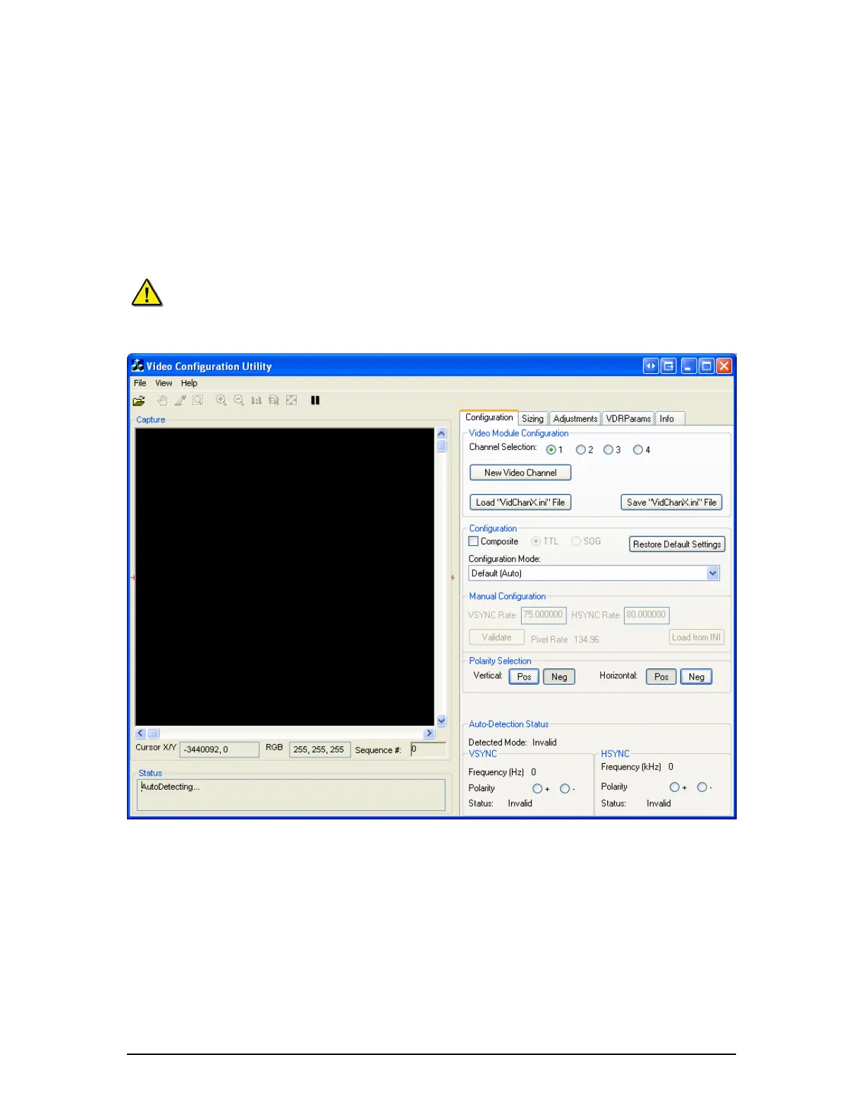 The Video Configuration Suite (VCS2) application is used to detect and adjust images to be