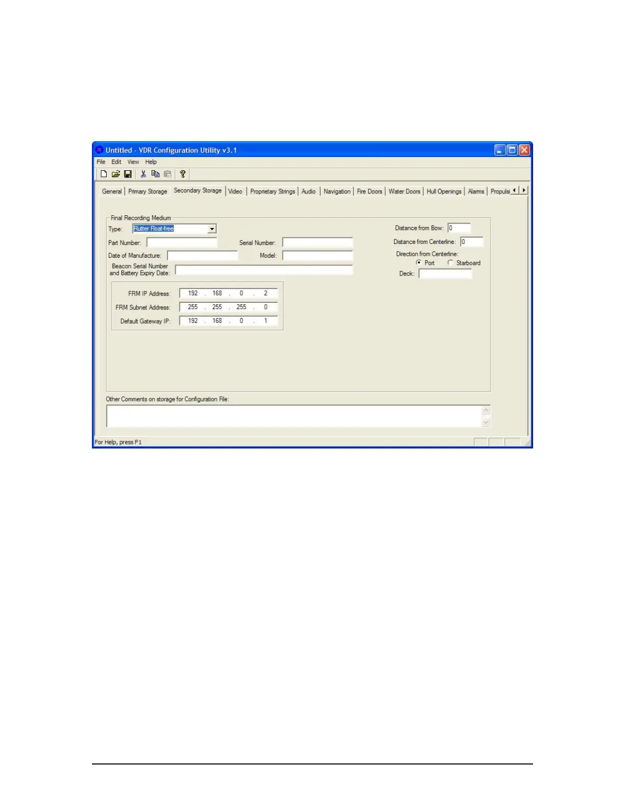 If the VDR is equipped with a secondary FRM, the ‘Secondary FRM’ tab will require the input of