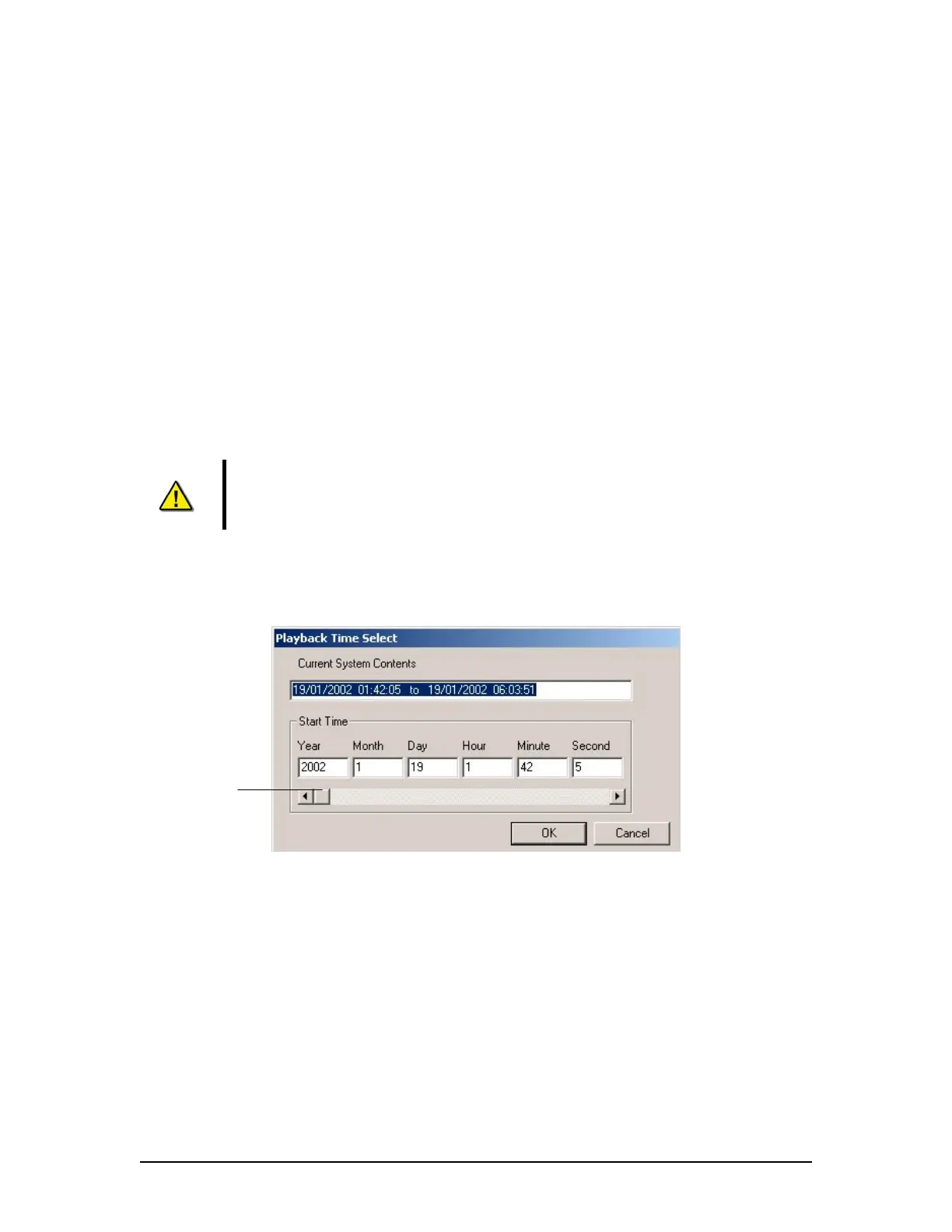 5. Use the scroll bar (or enter a time in the text boxes) to select a playback start time.