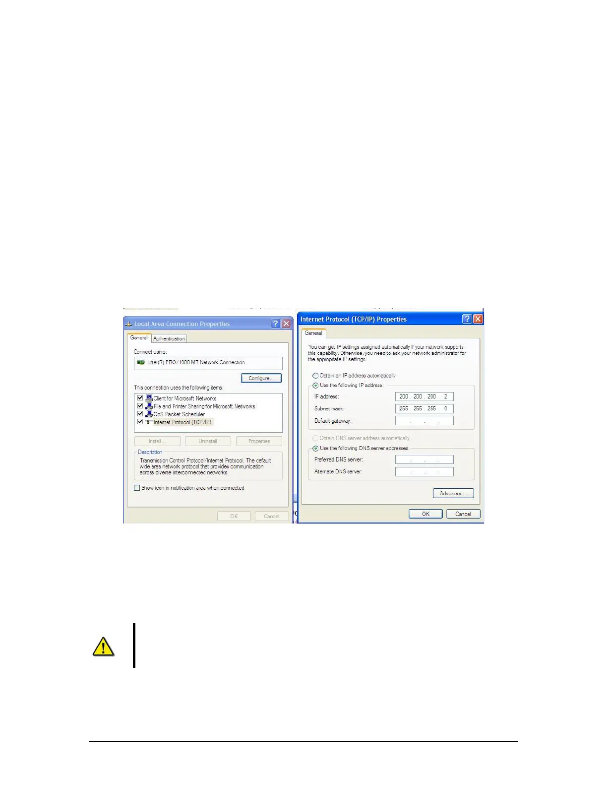 following IP address radio button and enter 200.200.200.2 (the last number can be any