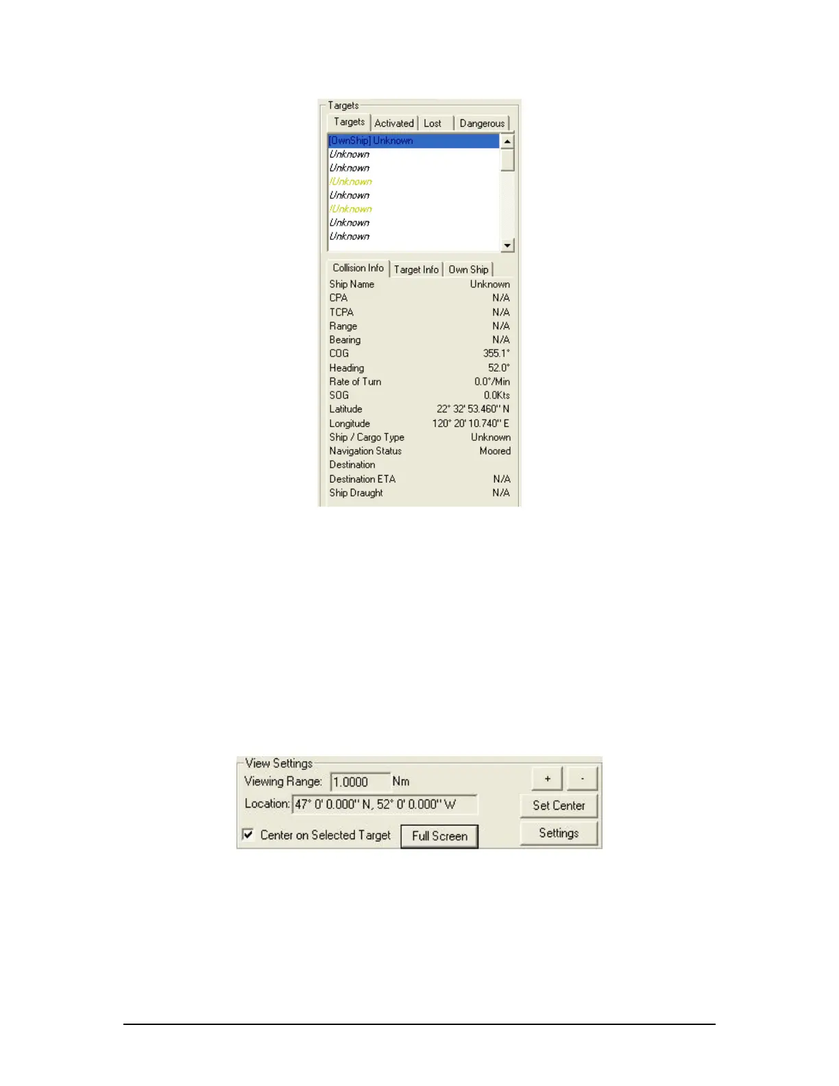 Target Info – provides registered information (e.g., MMSI, IMO, etc.) specific to a