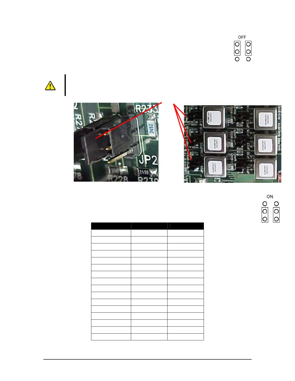 must cover the bottom 4 pins. The table below provides information for jumper numbers and