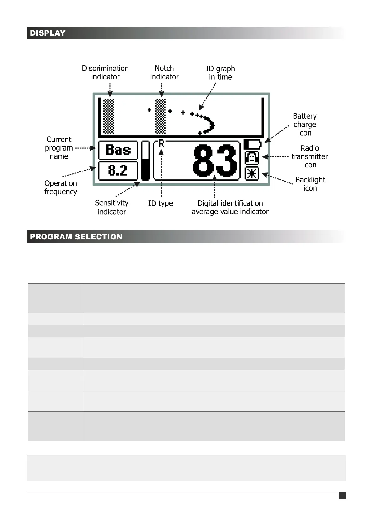 The detector has 7 factory pre-set programs designed for various types of objects as