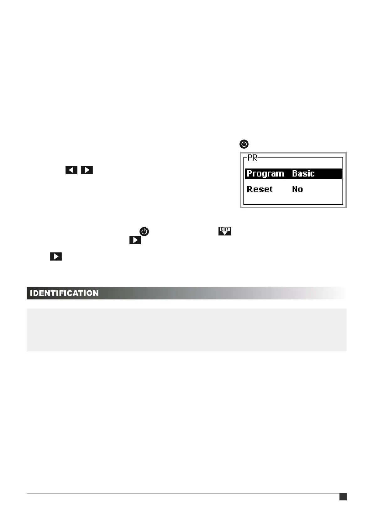 program selection screen, the reset confirmation screen will then appear (« Really? »). Use the